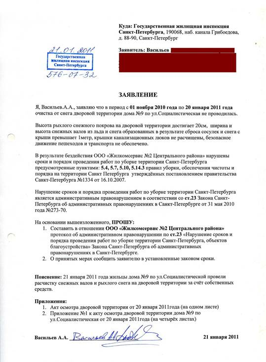 Образец заявления в ГЖИ