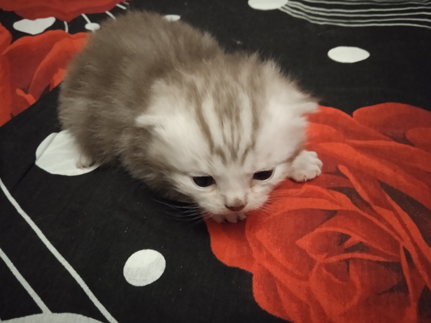 У меня нет котенка. Хочу. Но огромная собачка не даст нам порадоваться за котеночка. Была Люся. Но...ее время ушло, а другого котенка собачка не впустит в дом.