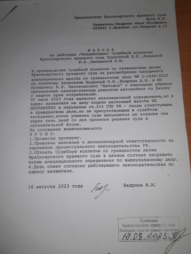 Александр, не пытайтесь втянуть в обсуждение вашего недовольства судом. Я не читала выложенные фото. Если у меня в работе возникают моменты, я действую в рамках процессуального законодательства.