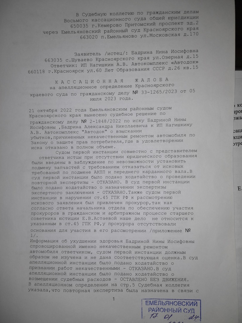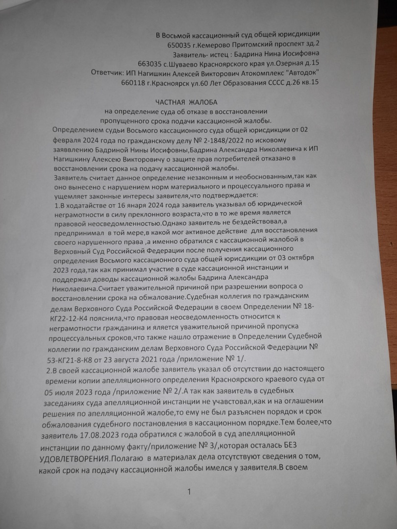 и саму кассационную жалобу