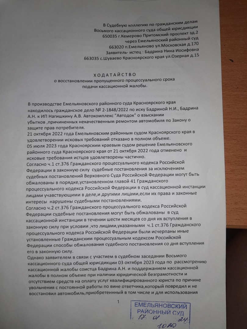 понятно,что суд уже отказал в удовлетворении кассационной жалобы подписанной мною,то здесь вот так