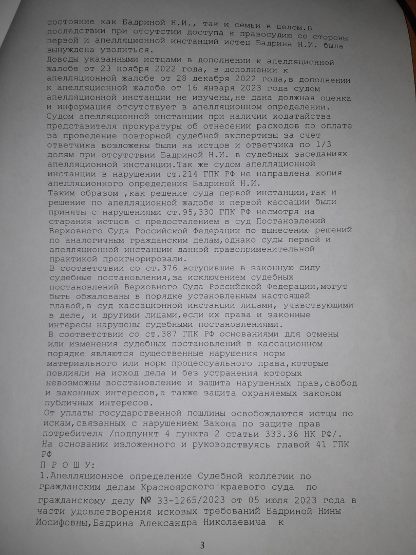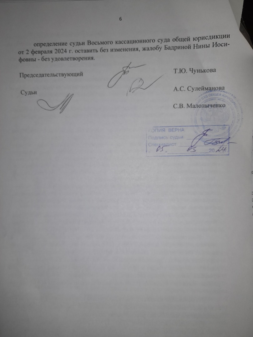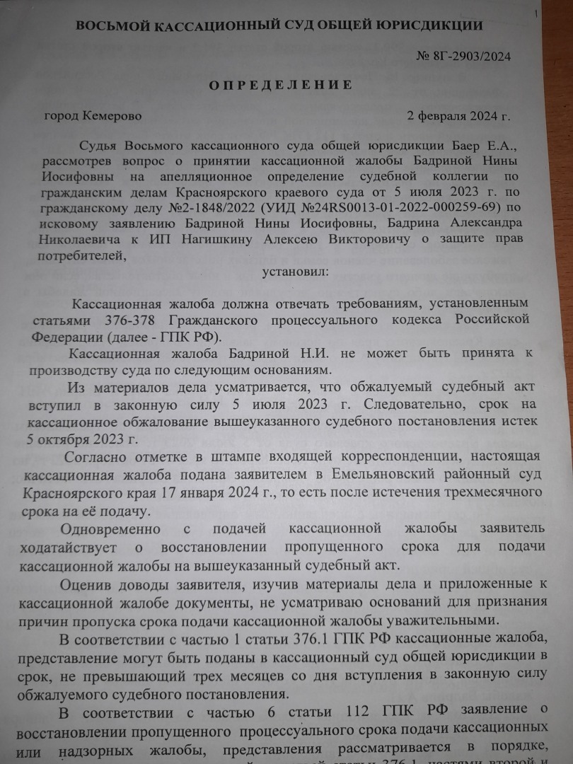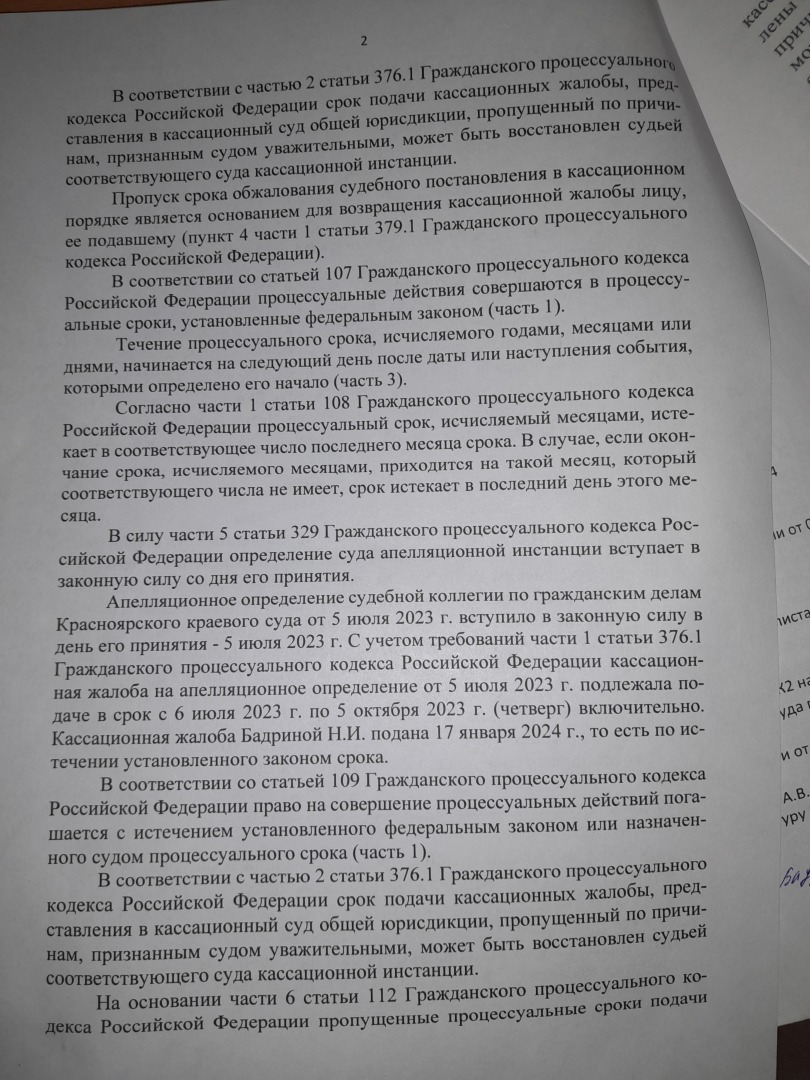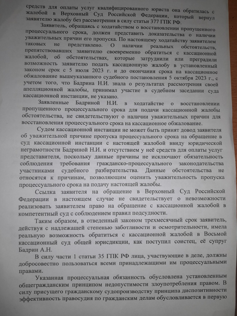 Кассационную жалобу ВС РФ подписала супруга .Получили вот такой ответ