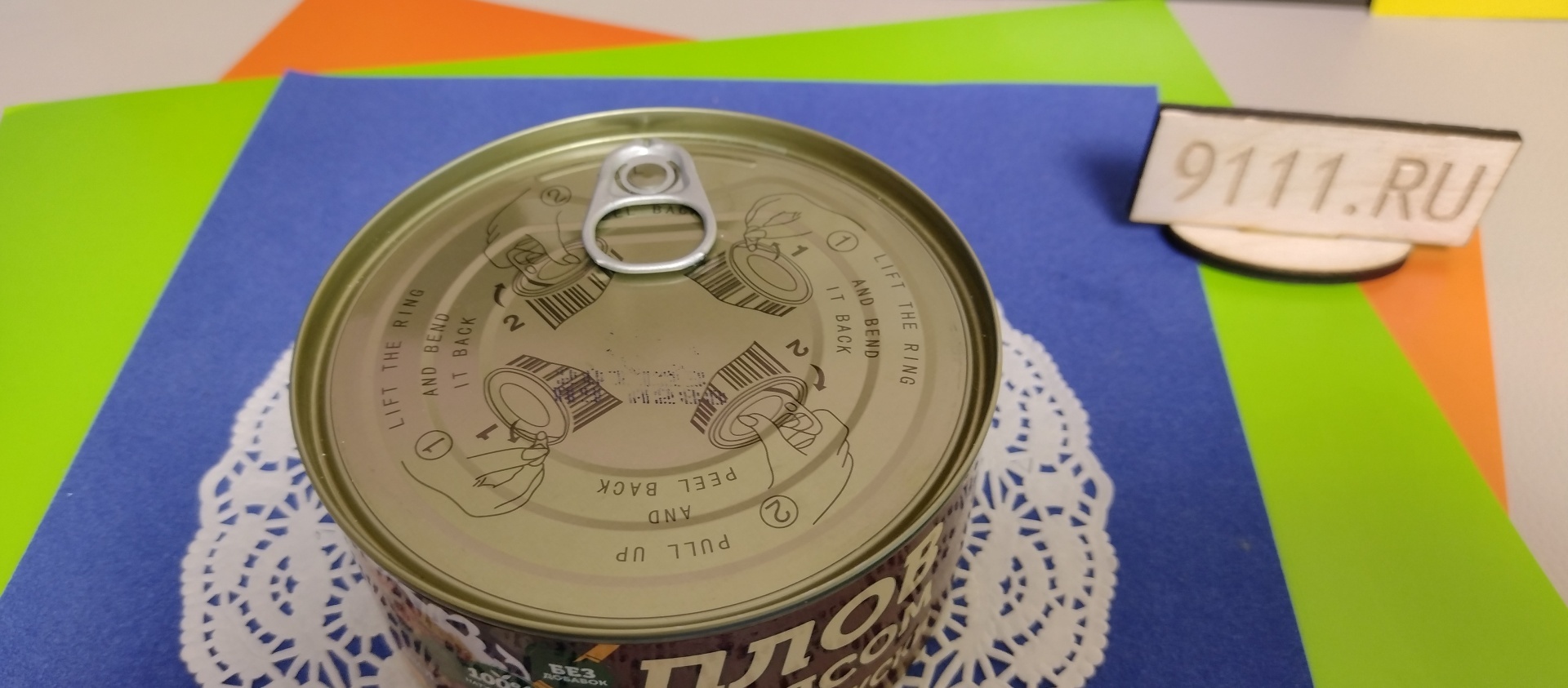 Но для начала посмотрим на крышку, где видим, что присутствует ключ, а это значит, что банку можно брать в поход и проблем с открыванием не будет.