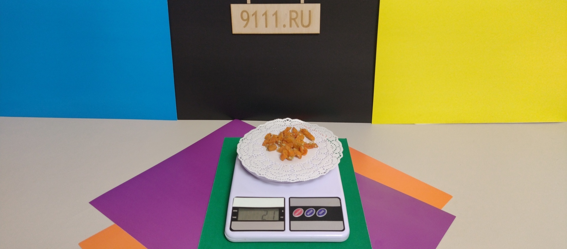 Отобрав тщательно морковку из риса, мы её снова взвешиваем и видим, что весит она 21 грамм.