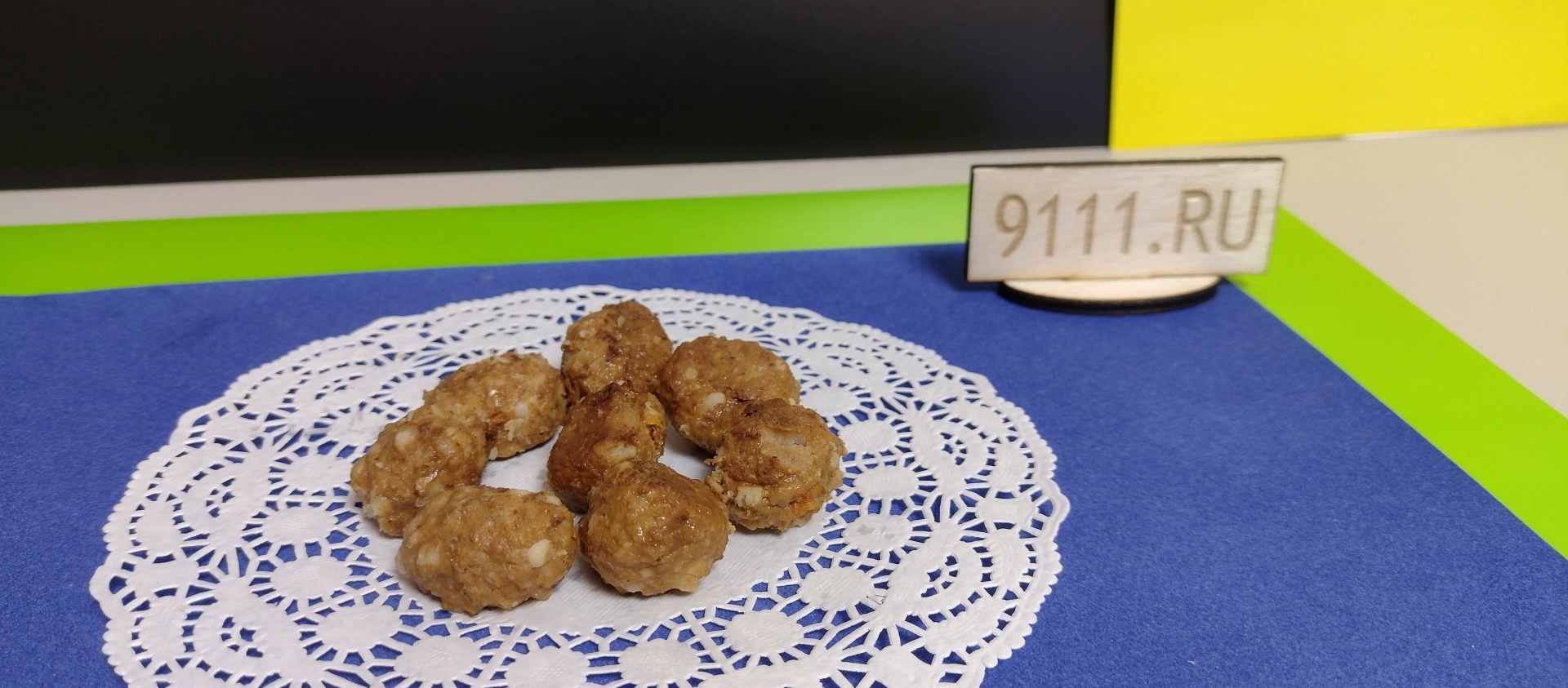 И вот теперь мы рассмотрим наши миникотлетки: выглядят они, честно говоря, странно, слеплены они, скорее всего, из фарша и чего-то белого.
