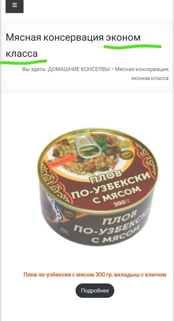 Кстати, на сайте производителя это блюдо позиционируется как "мясная консервация эконом класса"