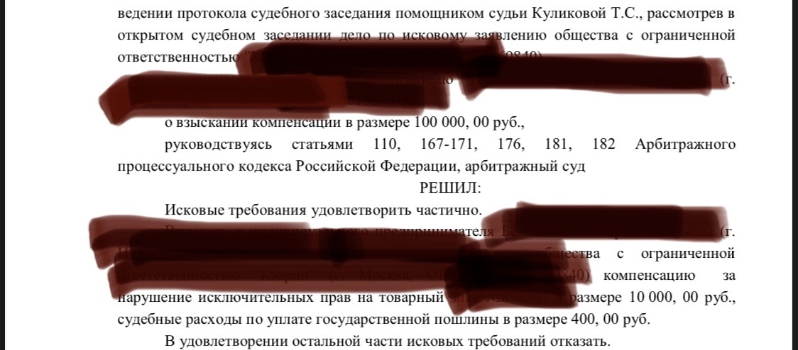 В личные сообщения на сайте в ноябре прошлого года мне написала Валерия. Пояснила, что она является Индивидуальным предпринимателем, получила иск с требованием об оплате ста тысяч рублей от правообладателя за нарушение его исключительных прав....Претензия ИП Валерией была оставлена без удовлетворения. Просила написать возражения на иск, так как она не согласна с заявленной суммой.