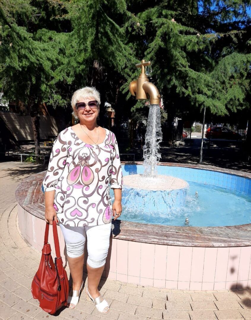 Дошли до необычного фонтана. Кран в воздухе висит. Смотрите на фото.