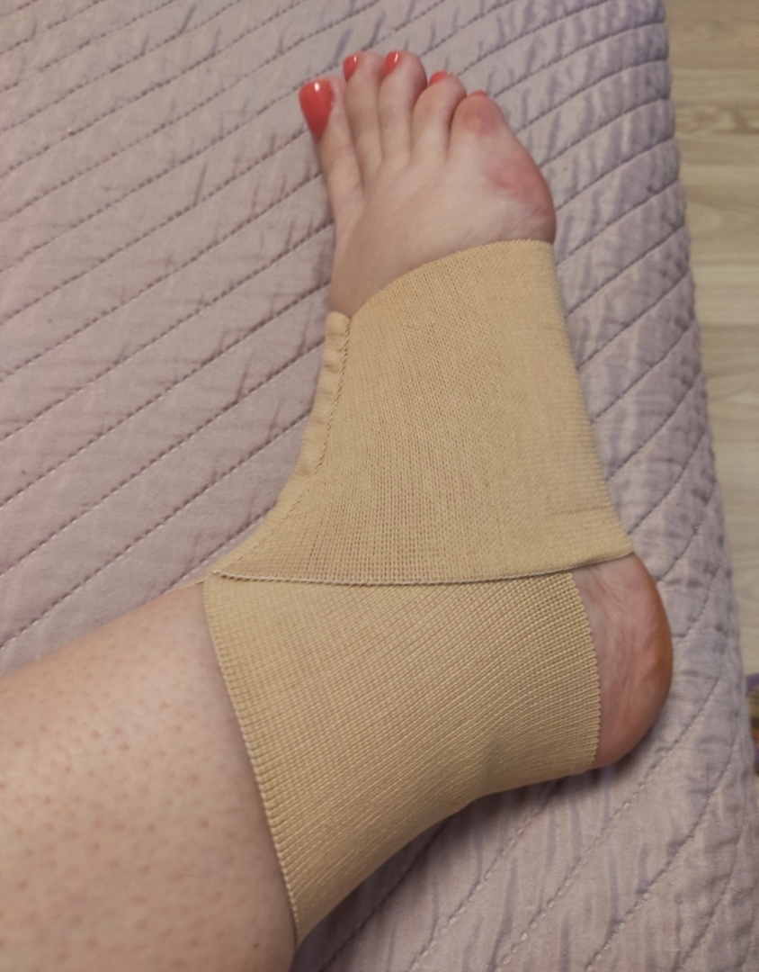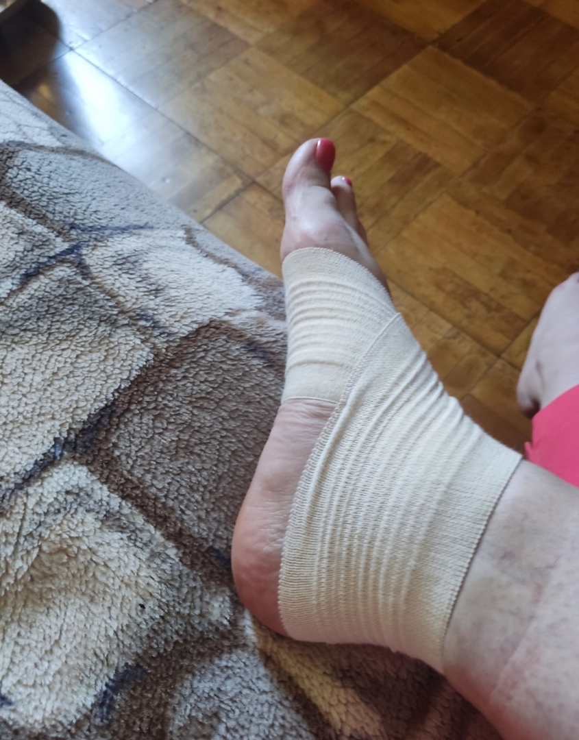 Дома же продолжала бинтовать больную ногу эластичным бинтом. Не знаю зачем. Больше психосоматика: приложить что-то к больному месту. 😁