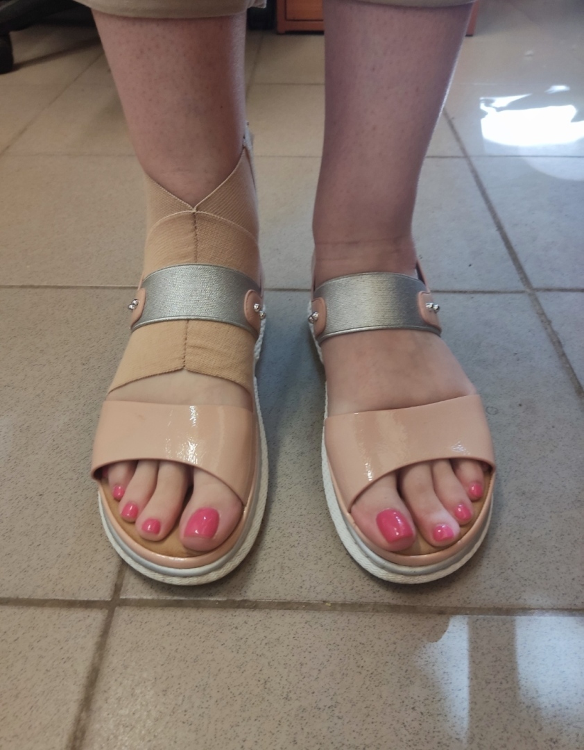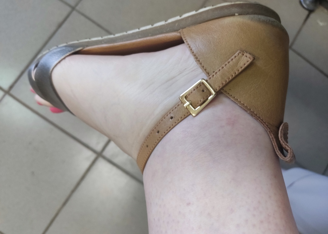 И достала свои самые большие босоножки, которые годом ранее были куплены перед поездкой в Сочи, чтобы удобнее было по горам лазать. Не подумала бы, что они мне в Москве пригодятся, но в них отлично помещалась моя распухшая нога с ортезом.
