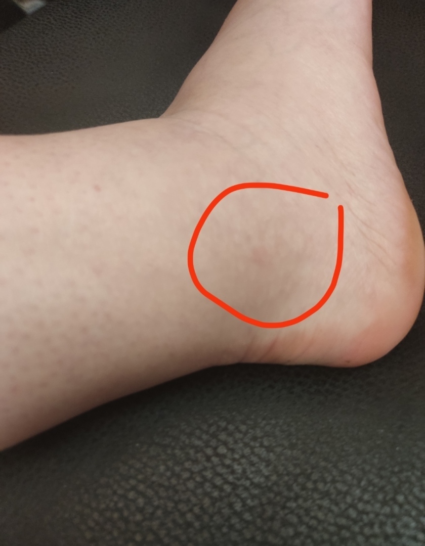 Сандалий еле застёгивался. Опухоль в районе пятки очевидна.