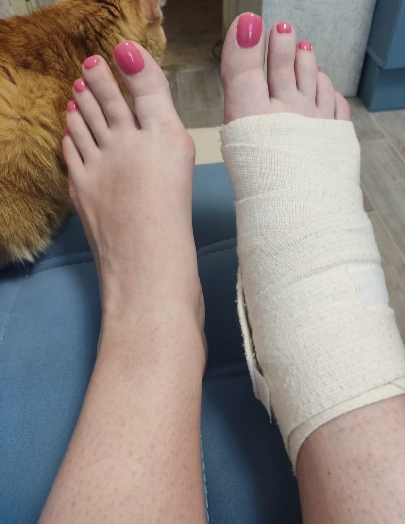 Это был большой прогресс, но на всех тех фото я всё равно то в одном ортезе, то в другом, то в утягивающем носке...