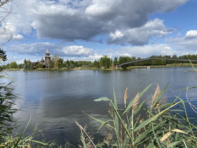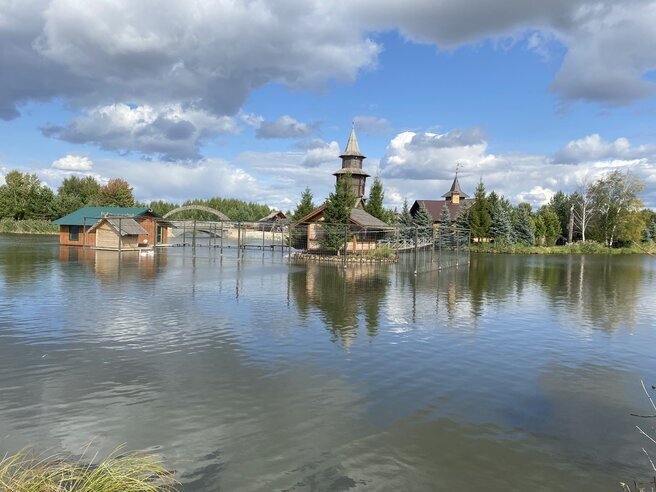 Вы даже себе представить не можете какая там красота. Природа живая, столько деревьев. Вы знаете, там несказанно чистая территория, деревянные строения, речка рядом. И еще есть водоем, а в нем ручные лебеди и утки плавают.