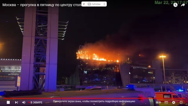 Это дерзкое нападение произошло перед началом концерта группы "Пикник", билеты на который были полностью распроданы. А на кадрах, опубликованных в Telegram-каналах видно, что в нападении участвуют несколько человек, ведущих огонь из самозарядного автоматического оружия: пятеро боевиков, вооружённых автоматами ворвались в здание и открыли стрельбу по людям, затем создали огненную ловушку, когда здание подожгли. В результате стрельбы в "Крокус Сити Холл" погибли 40 человек и свыше 100 ранены.