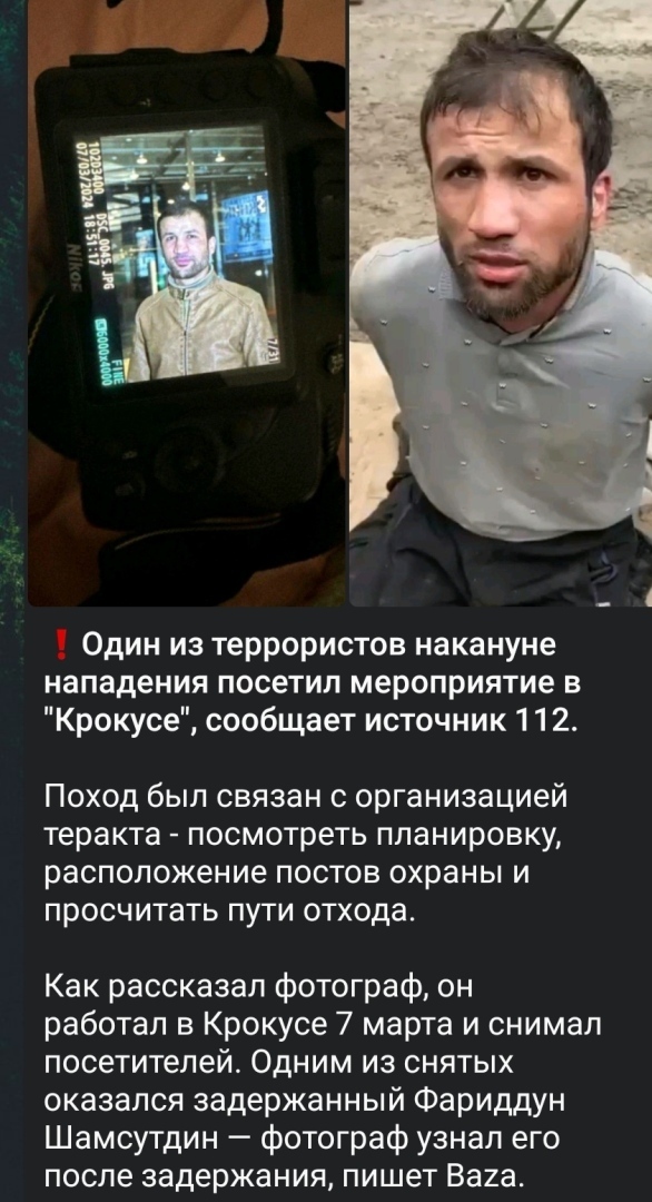 В ТГ писали, что один из них ещё 7 марта был в Крокусе и случайно попал в кадр фотографа.