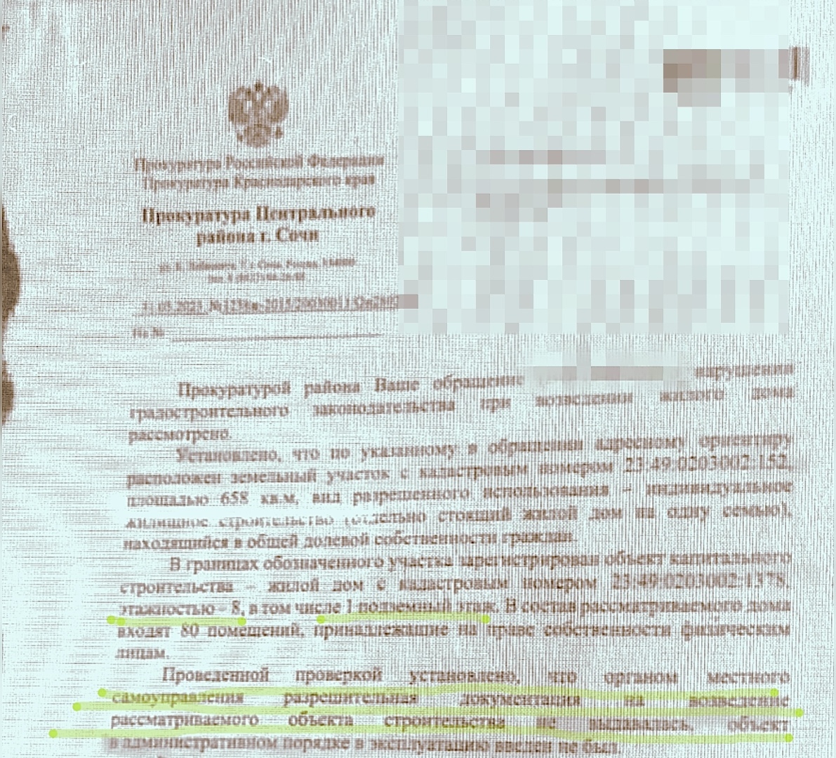 Был дом 6 этажей многоэтажка незаконная на земле ИЖС, (можно только 3 этажа)