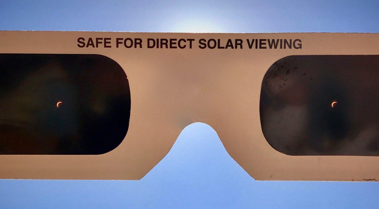 Необходимо принять меры, чтобы защитить глаза от солнечной ретинопатии - необратимого повреждения глаз, вызванного прямым взглядом на Солнце. Любое прямое наблюдение должно осуществляться только при правильном использовании одобренных очков для солнечного затмения, которые соответствуют международному стандарту безопасности, известному как ISO 12312-2.