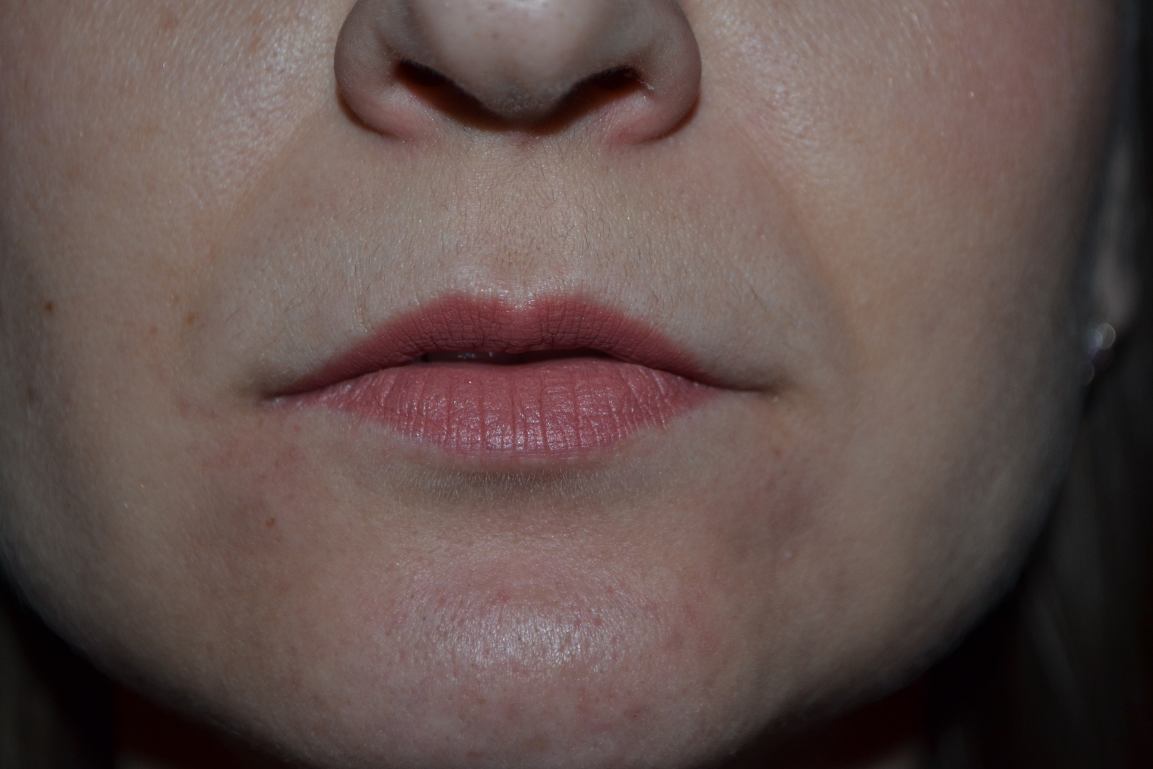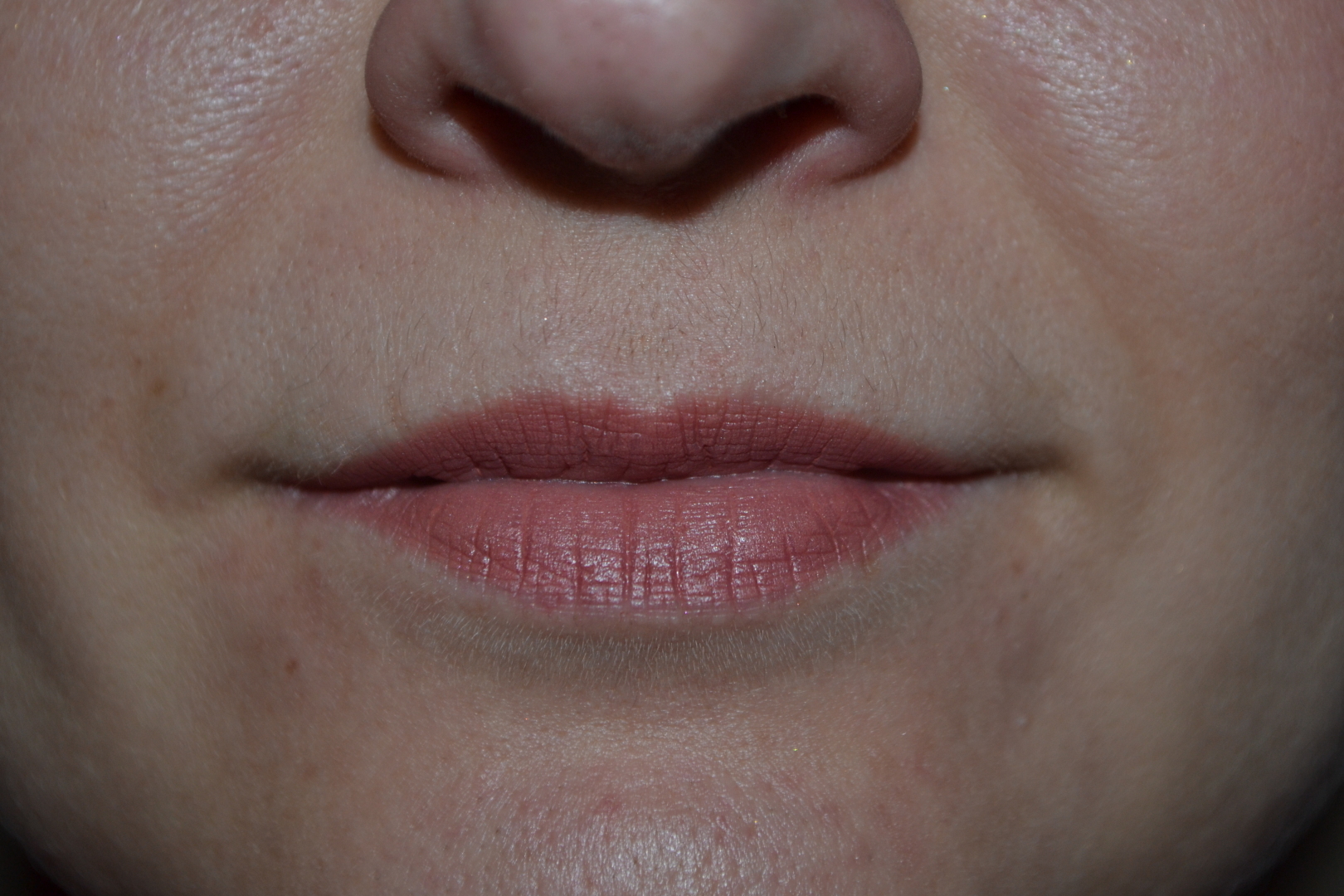 Приятный оттенок, не спорю, но со временем эта помада начинает скатываться на границе слизистой и проваливаться в складочки.