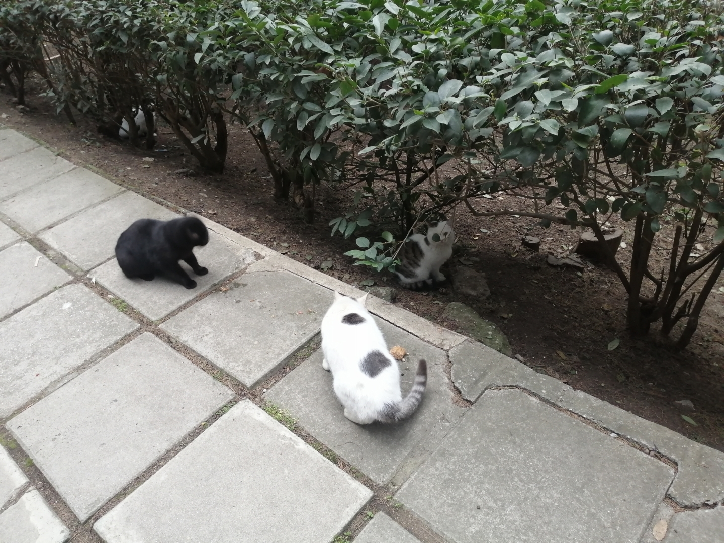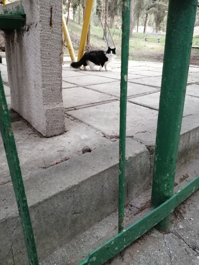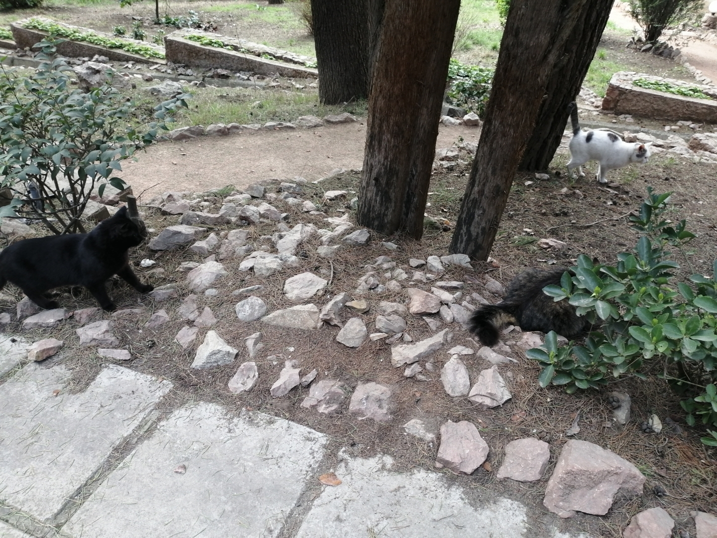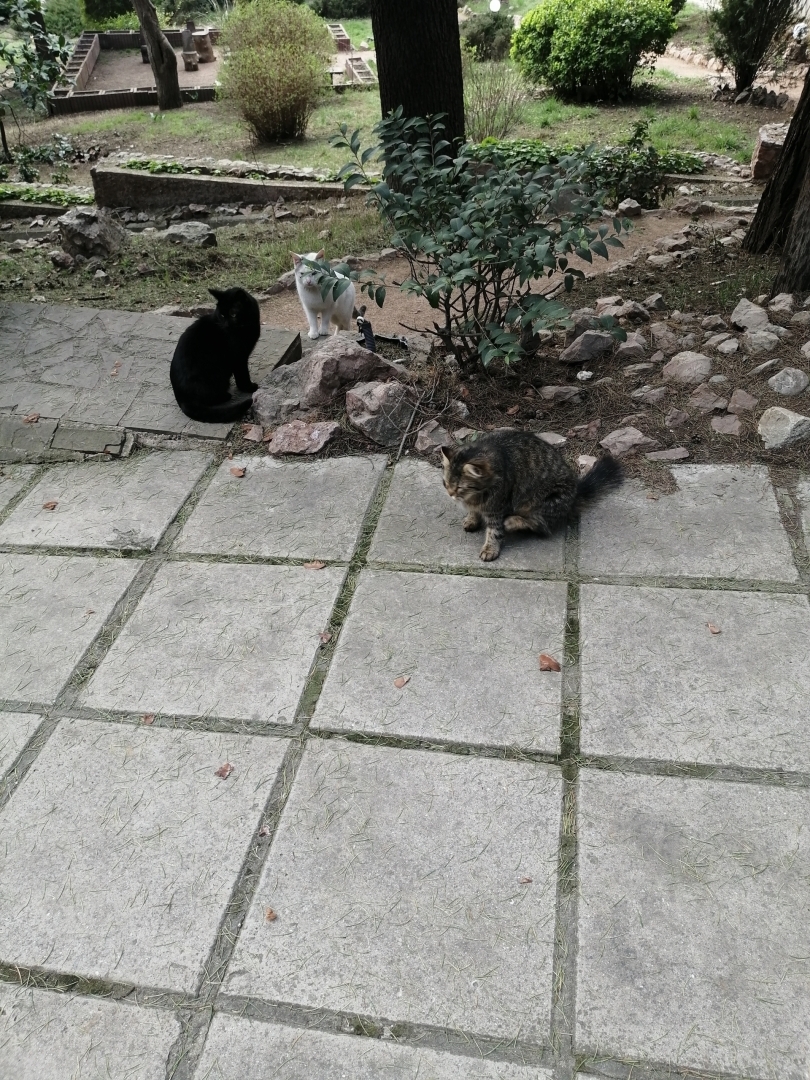 В санатории, где я жила, кошки уютно сидят на скамеечках и ждут завтрак, обед, ужин. Проживающие охотно кормят их.