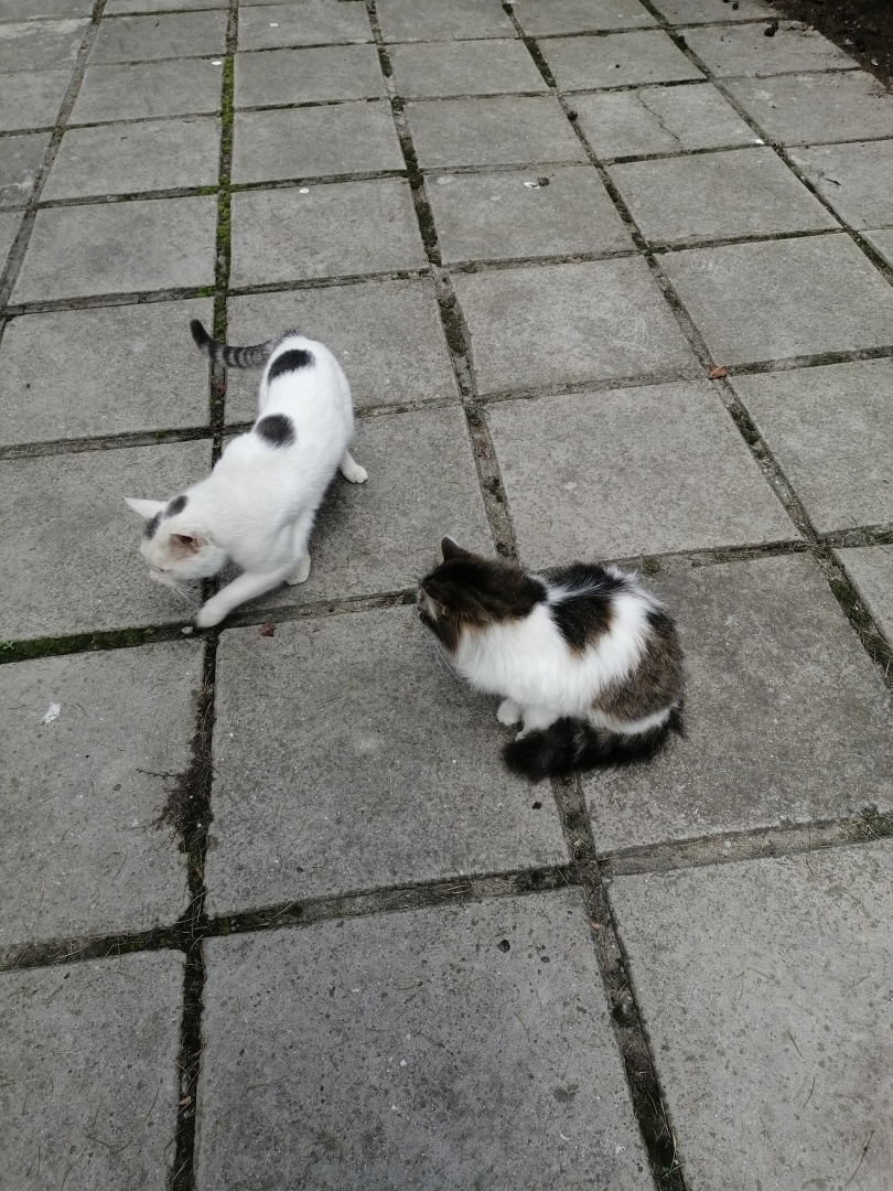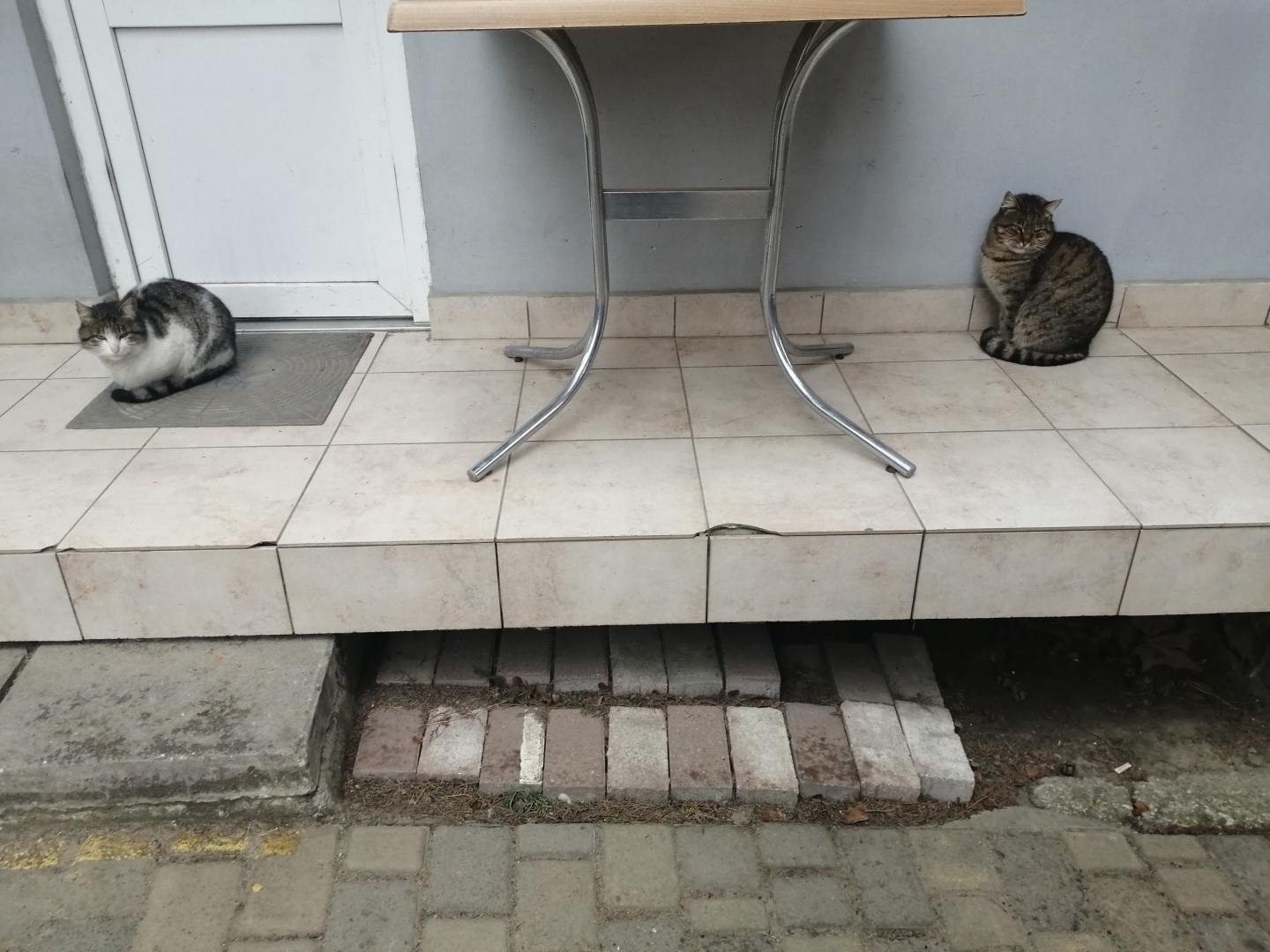 Собачки не гоняют кошек, как в средней полосе. Мир, дружба, кусок колбасы и котлета на косточке