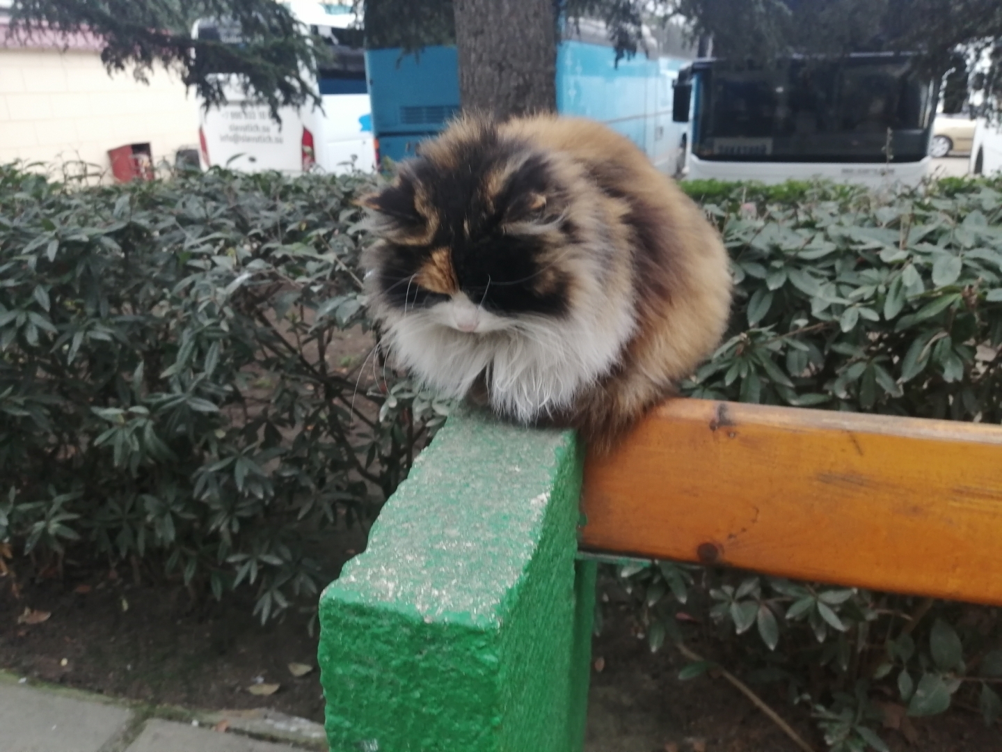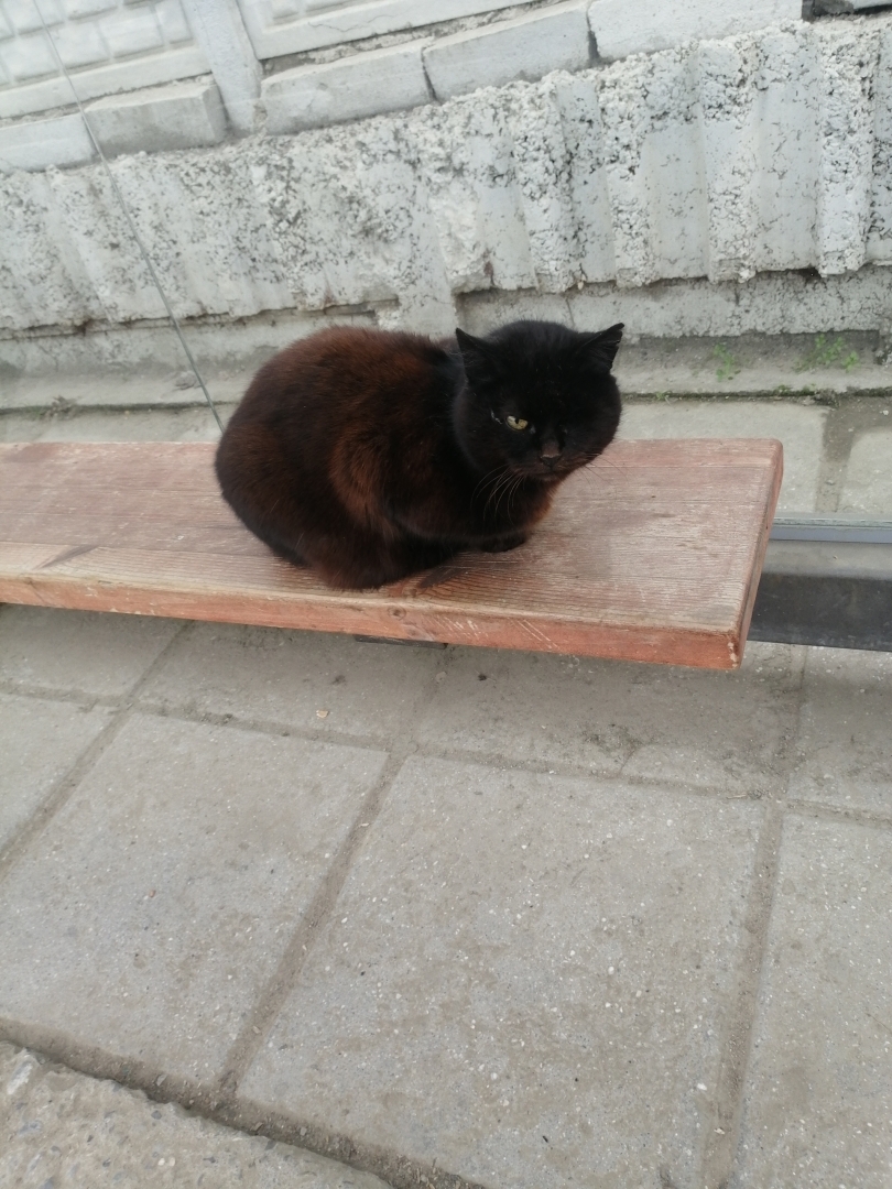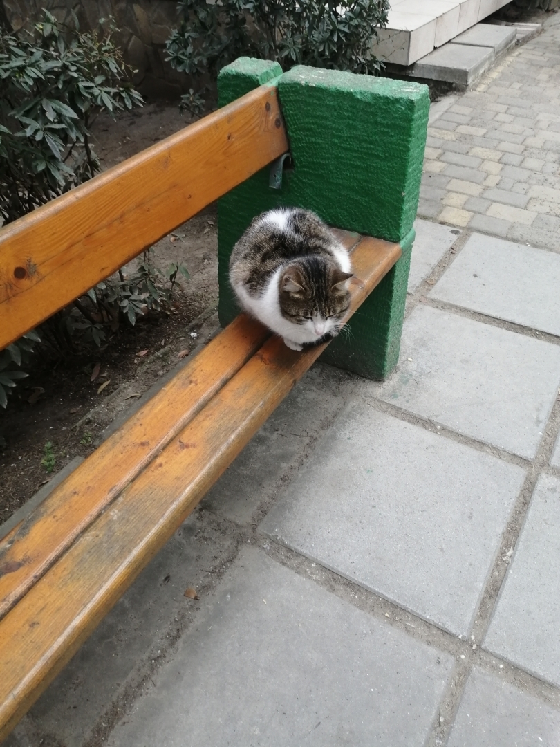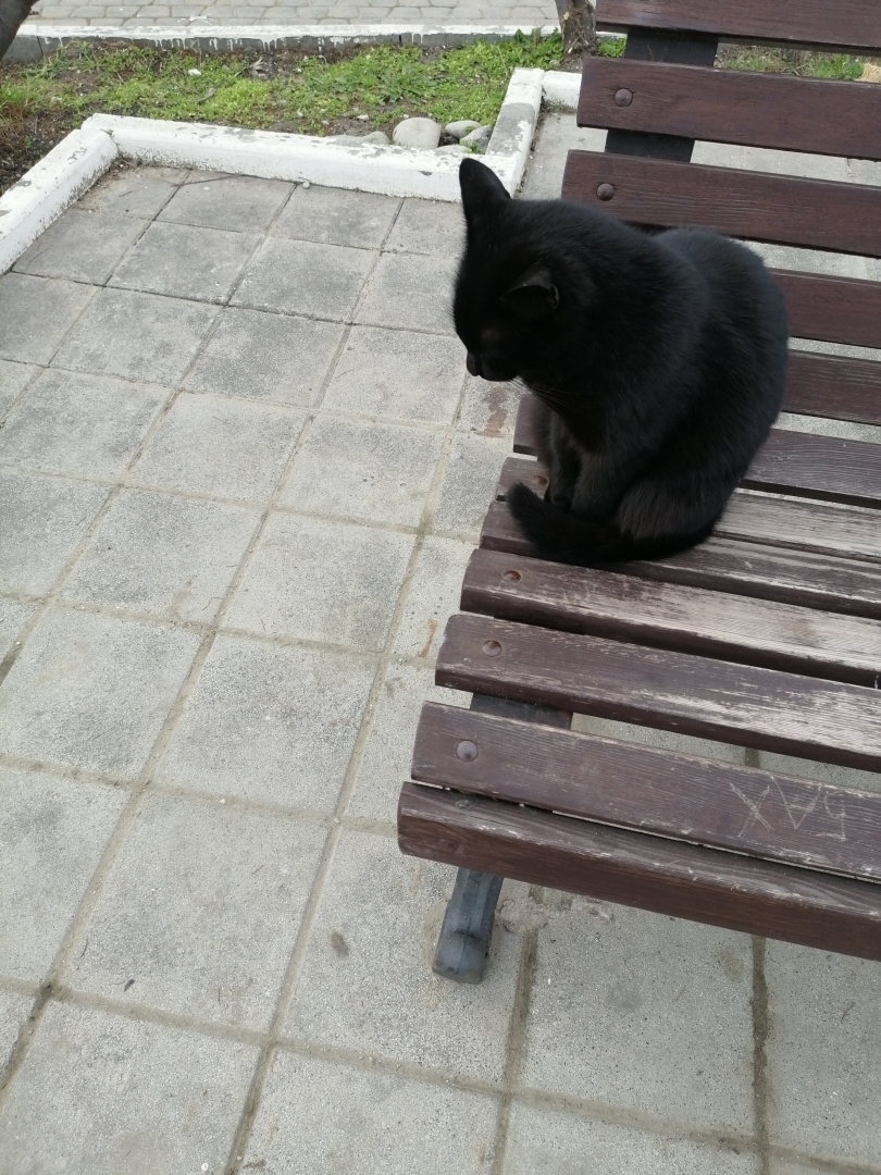 Никому и в голову не придет побеспокоить кошечку, которая отдыхает на скамейке. Все покорно стоят рядом.