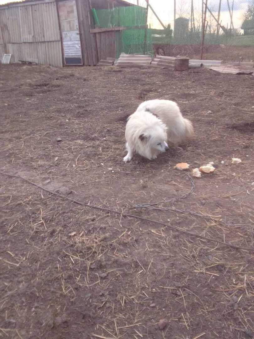 А это два охранника. Мухтар и Бимка. Каждый охраняет свою территорию. Они маленькие, но чужого во двор не запустят.