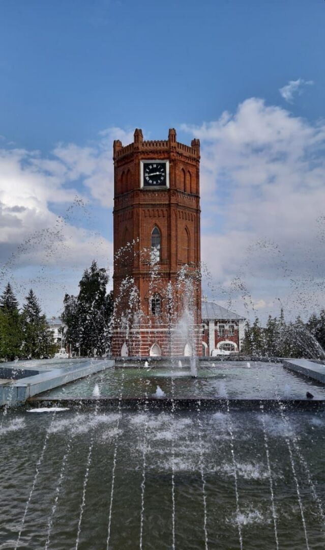 Увидела я и другой главный символ Ельца – водонапорную башню, стоящую с 1872 года. Целых 60 лет она снабжала водой город. В семидесятые годы стоял вопрос о сносе башни. Ведь она не вписывалась в колорит города. Но потом решили памятник архитектуры сохранить, установив на башне Елецкие куранты. Ни на день не умолкали с 1974 года, т.е. в этом году курантам – 50 лет.