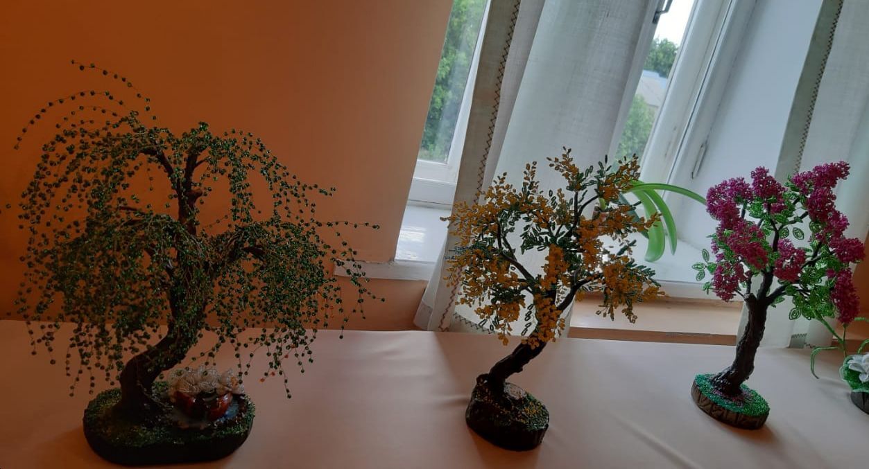 Кроме кружев, имеется зал с не менее красивыми изделиями из бисера. Они тоже, как кружева, радуют глаза туристов.