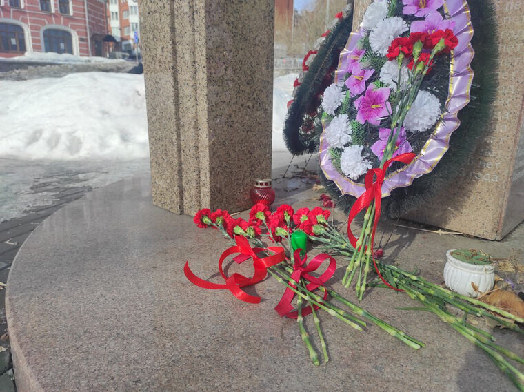 В разных местах города пермяки несли цветы к мемориалам и зажигали свечи.