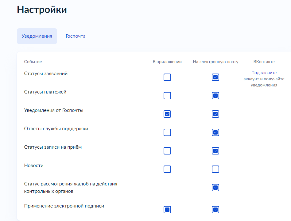 Извещения и постановления от приставов приходят в раздел «Уведомления» как Госпочта. Чтобы отобразить только Госпочту, воспользуйтесь фильтром «Показать» в левом углу экрана
