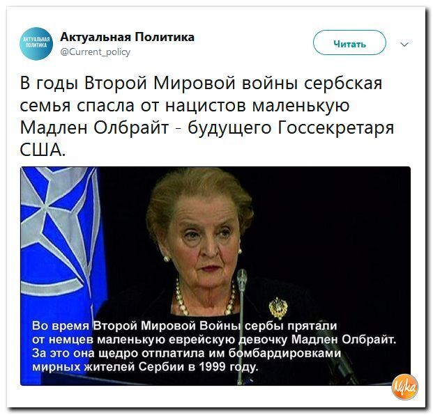 Россия будет помнить и никогда не забудет эту черную страницу в истории Сербии. Не забудем мы и зачинщиков этой агрессии: США, Великобританию, Францию, Германию, Италию, Бельгию, Канаду, Данию, Нидерланды, Норвегию, Испанию, Португалию и Турцию.