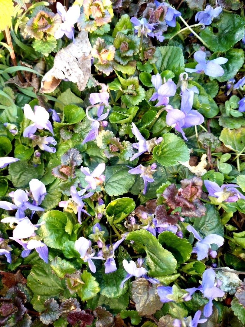 Ещё у нас растут лесные фиалки – это такие нежные и красивые цветы. Хотя мы живём не возле леса и вблизи его нет, но цветы лесные растут. Сами по себе выросли.
