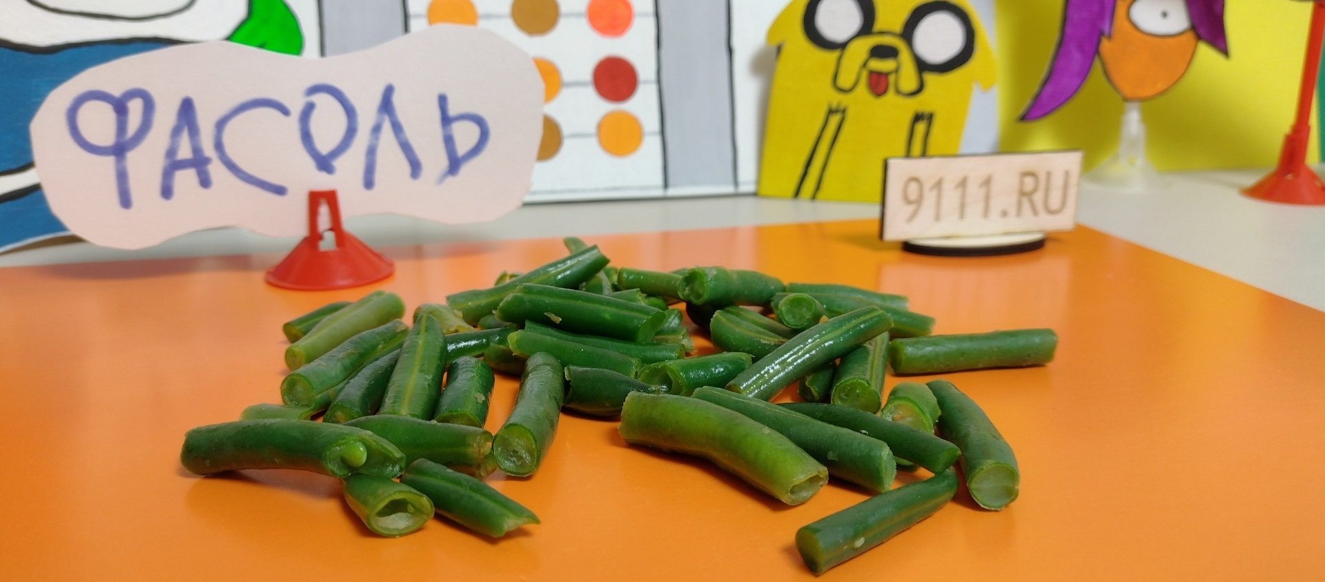 Затем идет стручковая фасоль нарезанная на небольшие продолговатые ломтики ,вес которых составляет всего 75 грамм