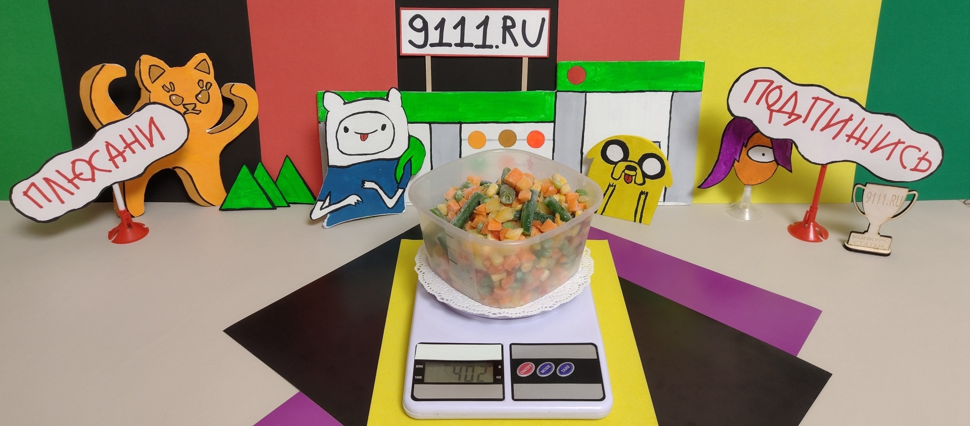 Ну вот и настал момент взвесить запечатанные пакет с замороженными овощами и весит он у нас целых 409 граммов