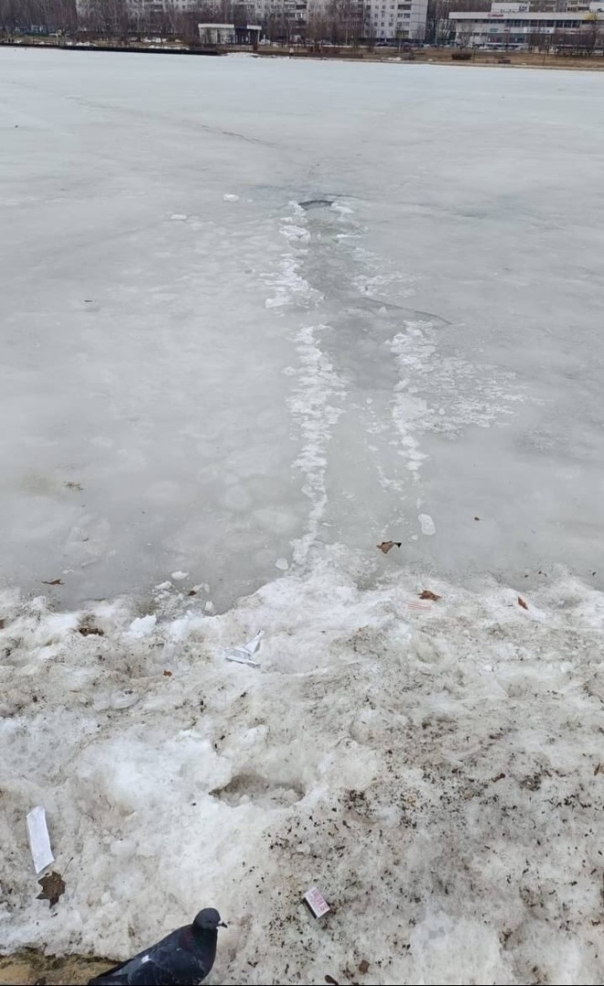 😱 Тут, в Гольяново, женщина решила перейти через пруд, но остатки весеннего льда не выдержали, и она провалилась в воду.