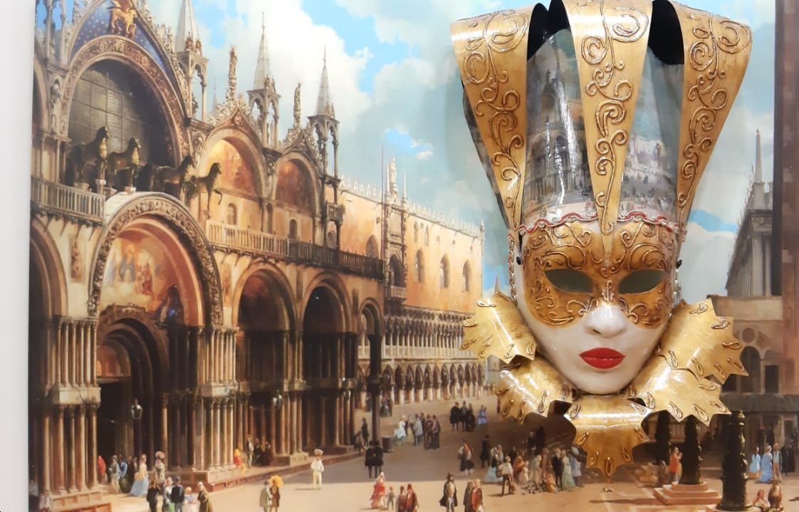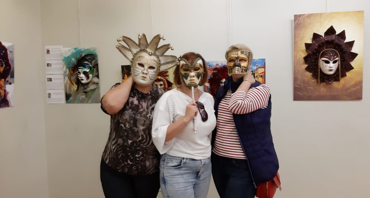 Посещение выставки венецианских масок, где можно было не только на них посмотреть, но и примерить на себя (невероятно красивые маски)