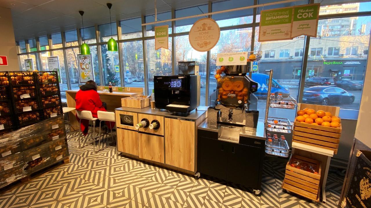 Также там есть миникафе. То есть огромная кофемашина. Платишь денежку, выбираешь кофе, собираешь себе стаканчик. Рядом стенд с булочками.