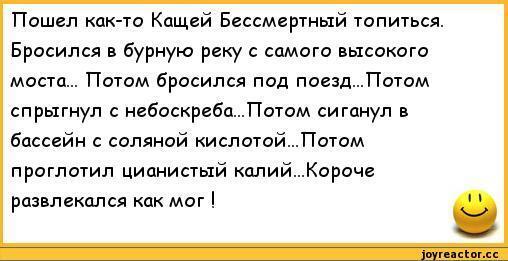 У Кащея всё Прекрасно и Вечно ! Ему и Лекарств не надо !