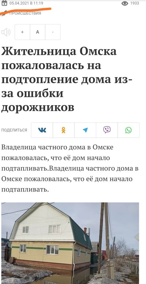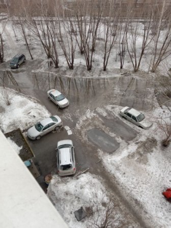В нашем дворе утонули машины. Чтобы дойти до остановки, нужны резиновые непромокаемые сапоги. И это во всех дворах города. В некоторые домах вода появилась на первых этажах подъездов. В омских новостях каждый день показывают кадры затопления подъездов и частных домов. Снег не вывозился в течение зимы. Около магазинов и павильонов такая же история.