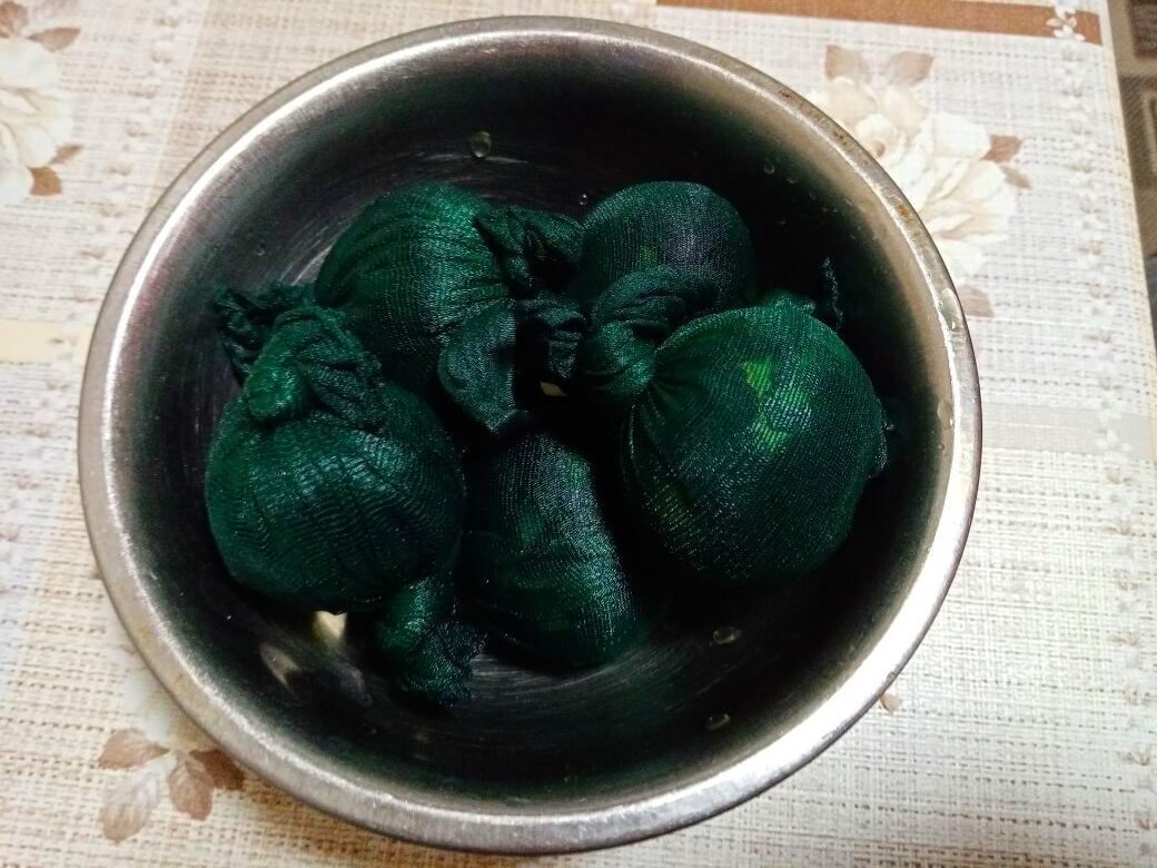 Как только они остынут, их необходимо развернуть, аккуратно разрезав марлю, и промыть. Яйца получаются вот такие: