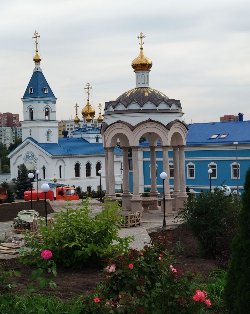 На территории монастыря хочется побыть подольше. Ухоженные клумбы, красивые деревья, розарии, голубые ели. Беседки, лавочки для отдыха.
