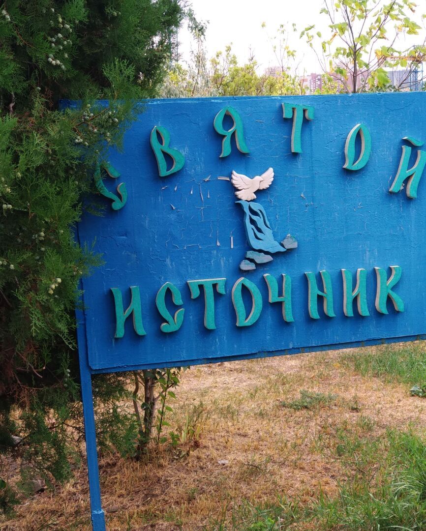 Идя по дорожке от собора вглубь территории, видим указатель: «святой источник»