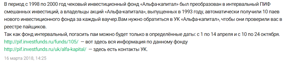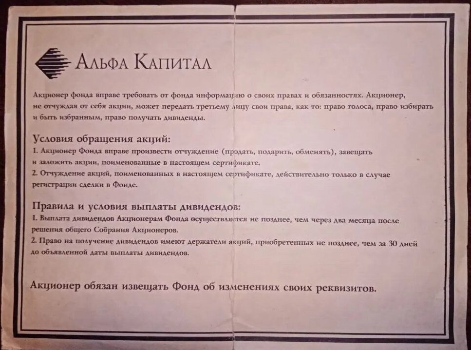 Оказывается, инвестиционный фонд "Альфа Капитал" и сейчас существует и управляет неплохими миллиардными активами. Кроме того, я нашла пояснение одного из юристов, правда, датированное 2018 годом: