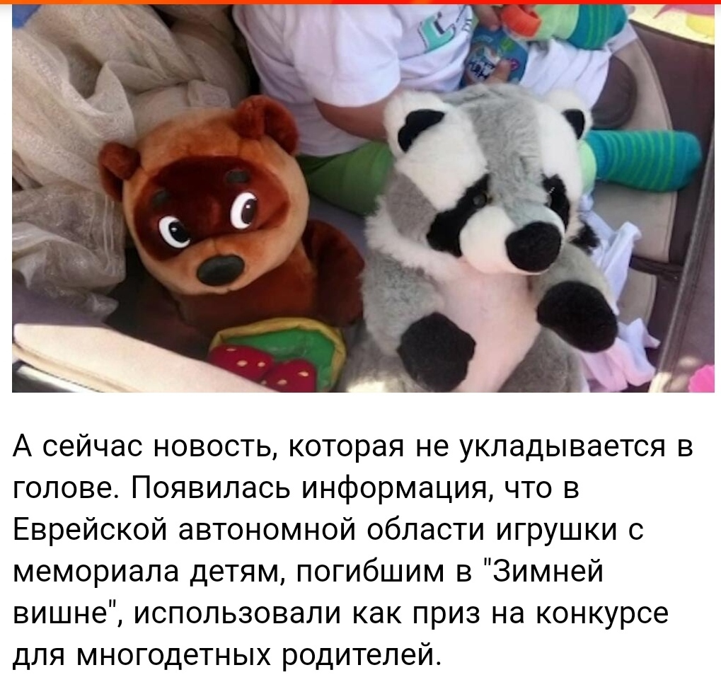 В случае с новостью о том, что временный мемориал логично разобрали, так как он был временный, а игрушки отправили в детский дом, некоторые явно переусердствовали с интерпретацией событий и добрались до крайностей: якобы это почти то же самое, что подарки с могилы.