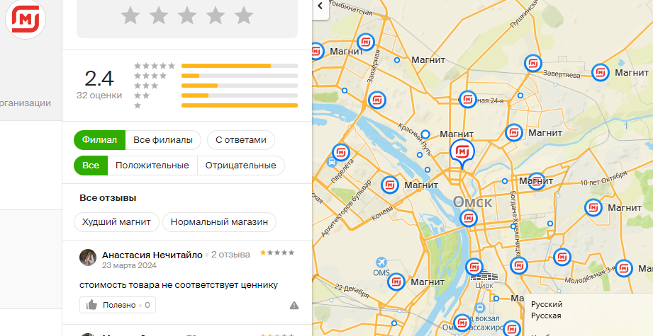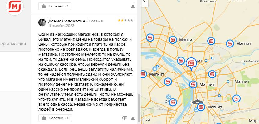 Каждый мой поход в Магнит заканчивается испорченным настроением. Другие люди пишут то же самое, скрины с Дубль-гиса прилагаю. Обязательно на чем-нибудь да обманут. То шоколад, то апельсины, то селедка в масле, то еще что-нибудь.