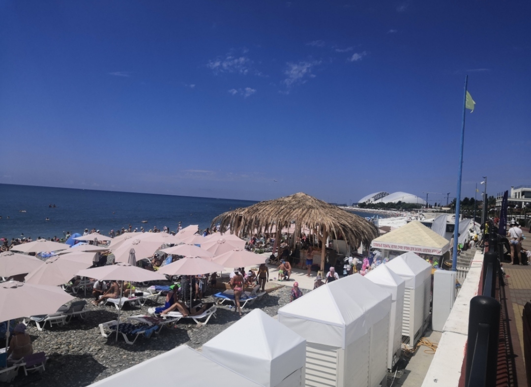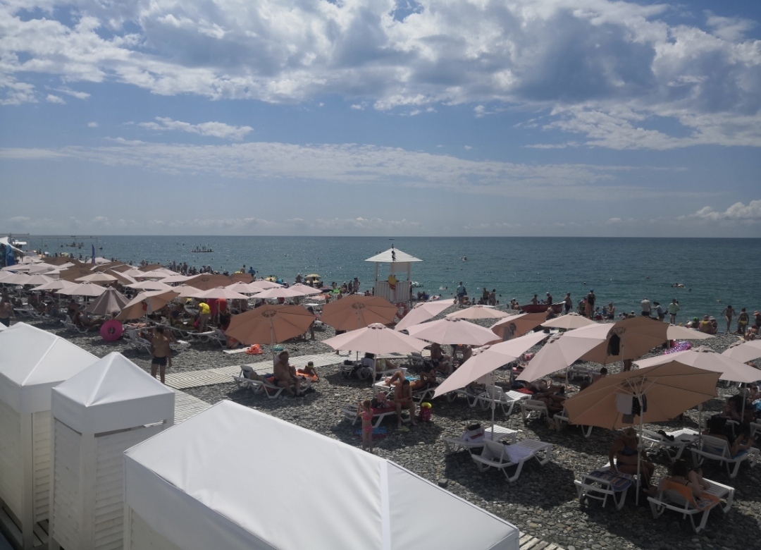 Мы в Адлере разведали многие пляжи. Ни один особо не понравился. Поэтому остановились на пляже пансионата "Южный". Вход на этот пляж осуществлялся по пропускам или по справке о вакцинации. 😁 У нас было второе. Записали нас в специальный журнал и пускали.