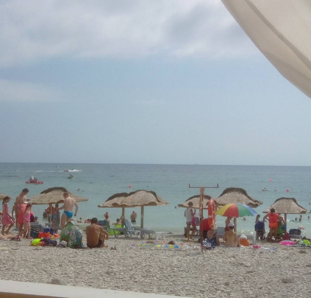 Только не пугайтесь сразу. Эта часть пляжа для ленивых людей, которые не любят далеко ходить. Мы уходили подальше и там было меньше, гораздо меньше народа. Единственный минус: в августе после обеда приплывали медузы. ☹️