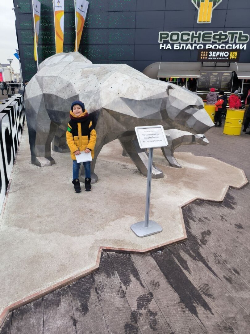 До выхода ВДНХ мы сфотографировались у павильона "Роснефть" у большого макеты белой медведицы и медвежонка.