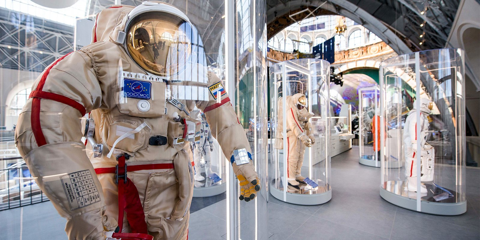А рядом гостей встречали ребята-космонавты. Максим обошел каждый костюм и посмотрел, какие бывают космические костюмы.