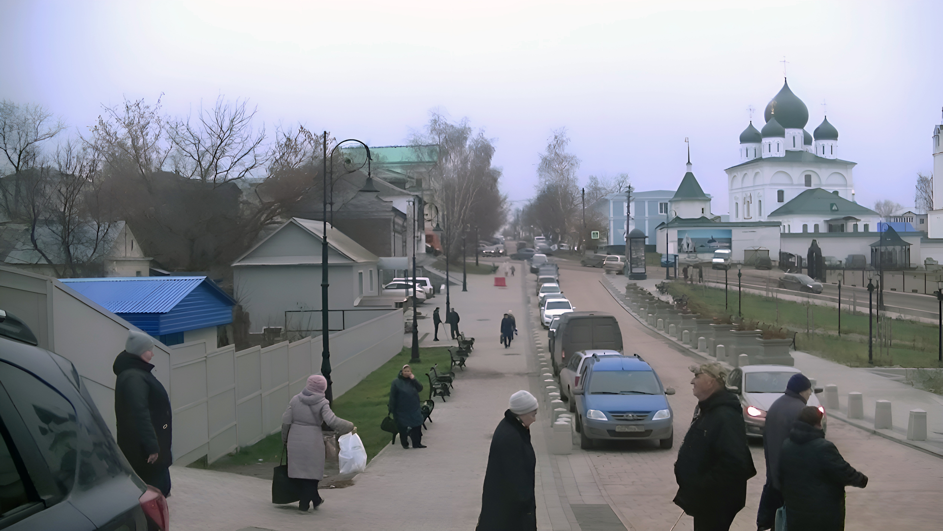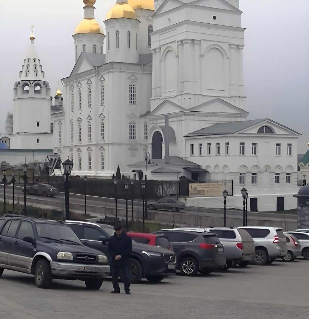Поднявшись к благовещенской церкви, мы с удивлением обнаружили, что дымка создавала невероятно красивые и таинственные отражения на стеклянных оконных рамах, придавая зданию особую мистическую красоту.